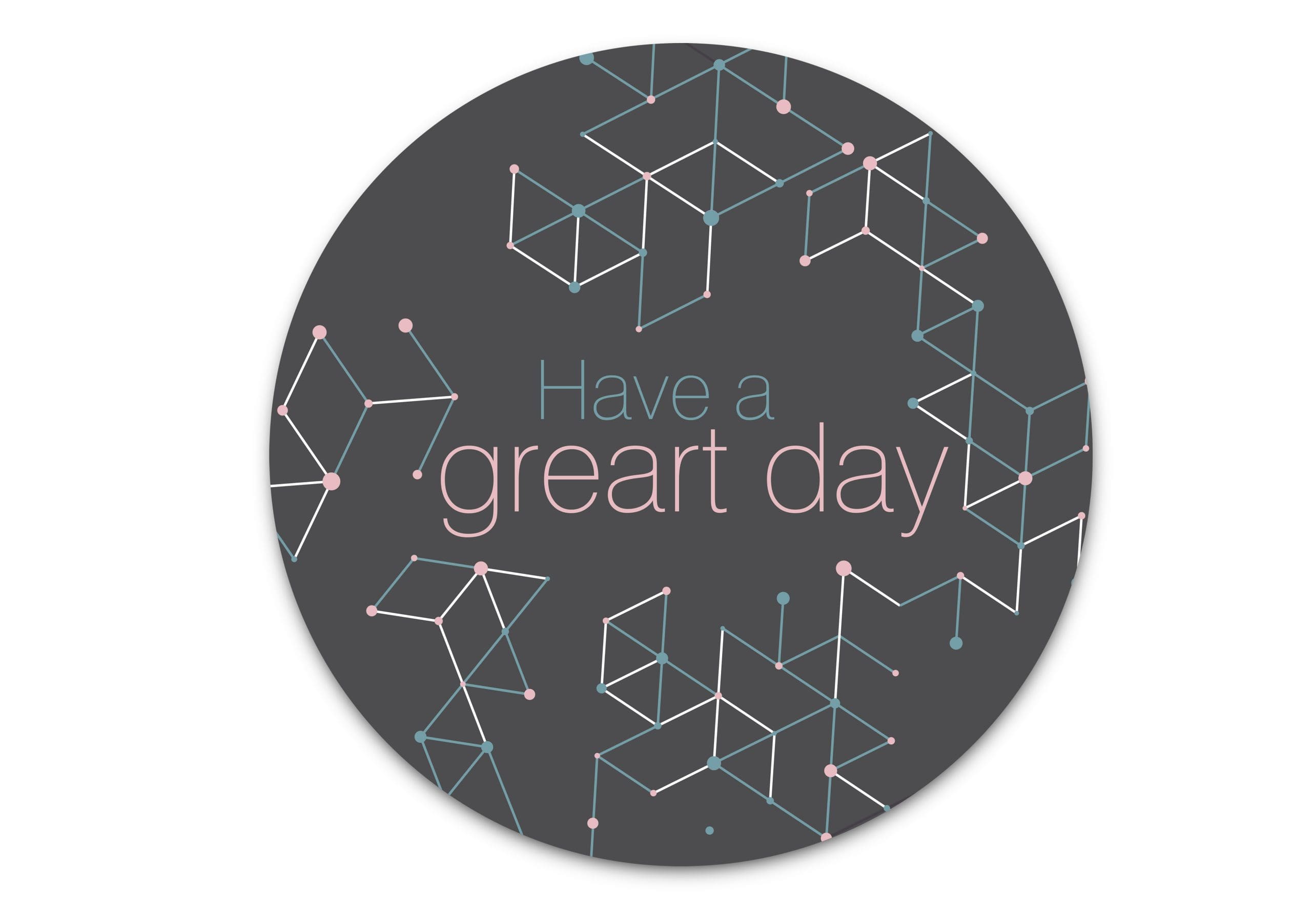 מפה פי וי סי עגולה דגם אנרגיות חיוביות בעיצוב צורות גאומטריות יחד עם משפט "have a great day".