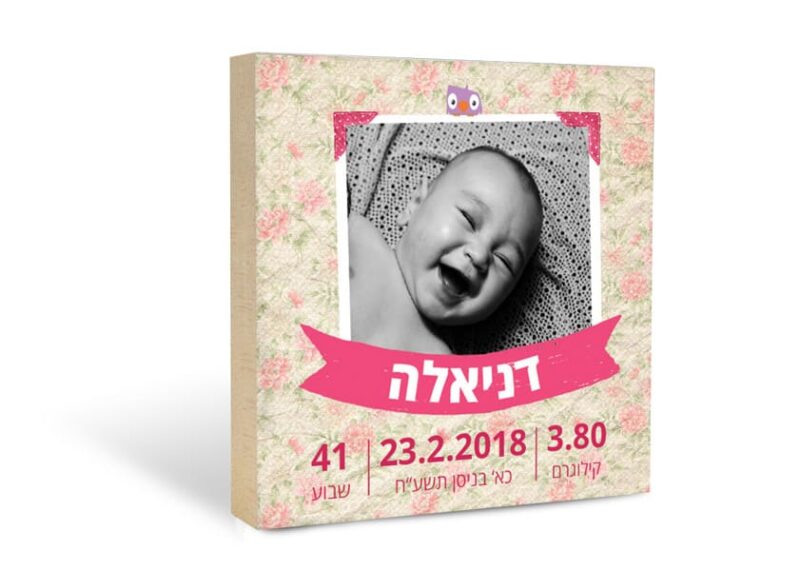 מתנה מרגשת לכל יולדת ומזכרת פשוט מהממת עם כל הפרטים החשובים מיום הלידה ותמונה מלאה באהבה.